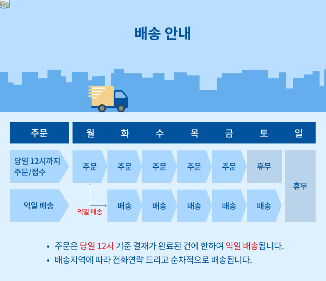 당일 오후 12시까지 주문을 하시면